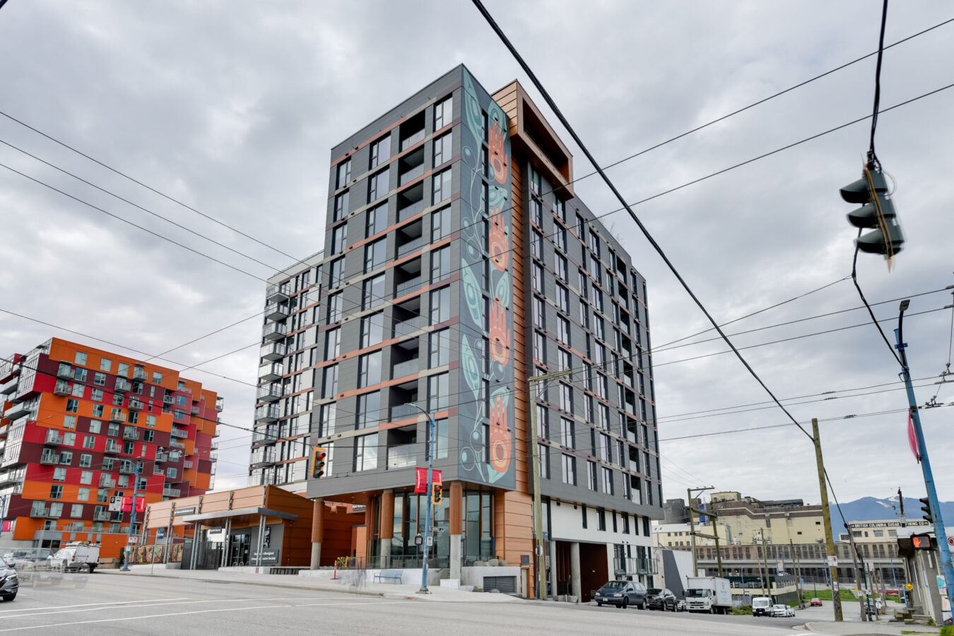 M’akola Development Services (MDS) worked as the development consultant for BC Housing and the Vancouver Aboriginal Friendship Centre Society to build a range of housing options for people of all ages struggling to find a place to call home. It includes 80 safe shelter beds for people and families experiencing homelessness, 25 studios and one-bedrooms for people who are ready to move from the shelter to more independent living, 87 affordable rental homes for people and families with lower incomes (one, two and three-bedroom units), 56 market rental homes to help pay for the cost of the more affordable units, and 2 social enterprise space operated by the Vancouver Aboriginal Friendship Centre Society. The building also includes courtyard access, a rooftop multi-purpose and landscaped area, and a multi-level day centre with a range of services available, such as a dedicated cultural gathering space, lounge areas, a gym, an art studio and counselling spaces.
